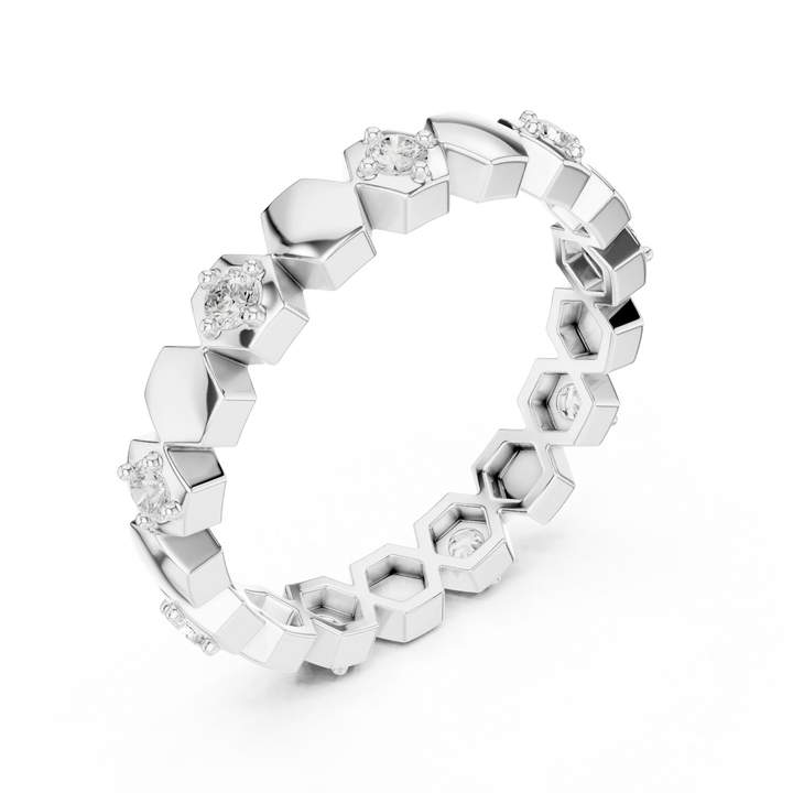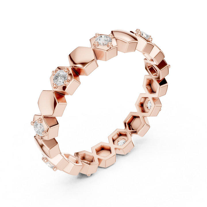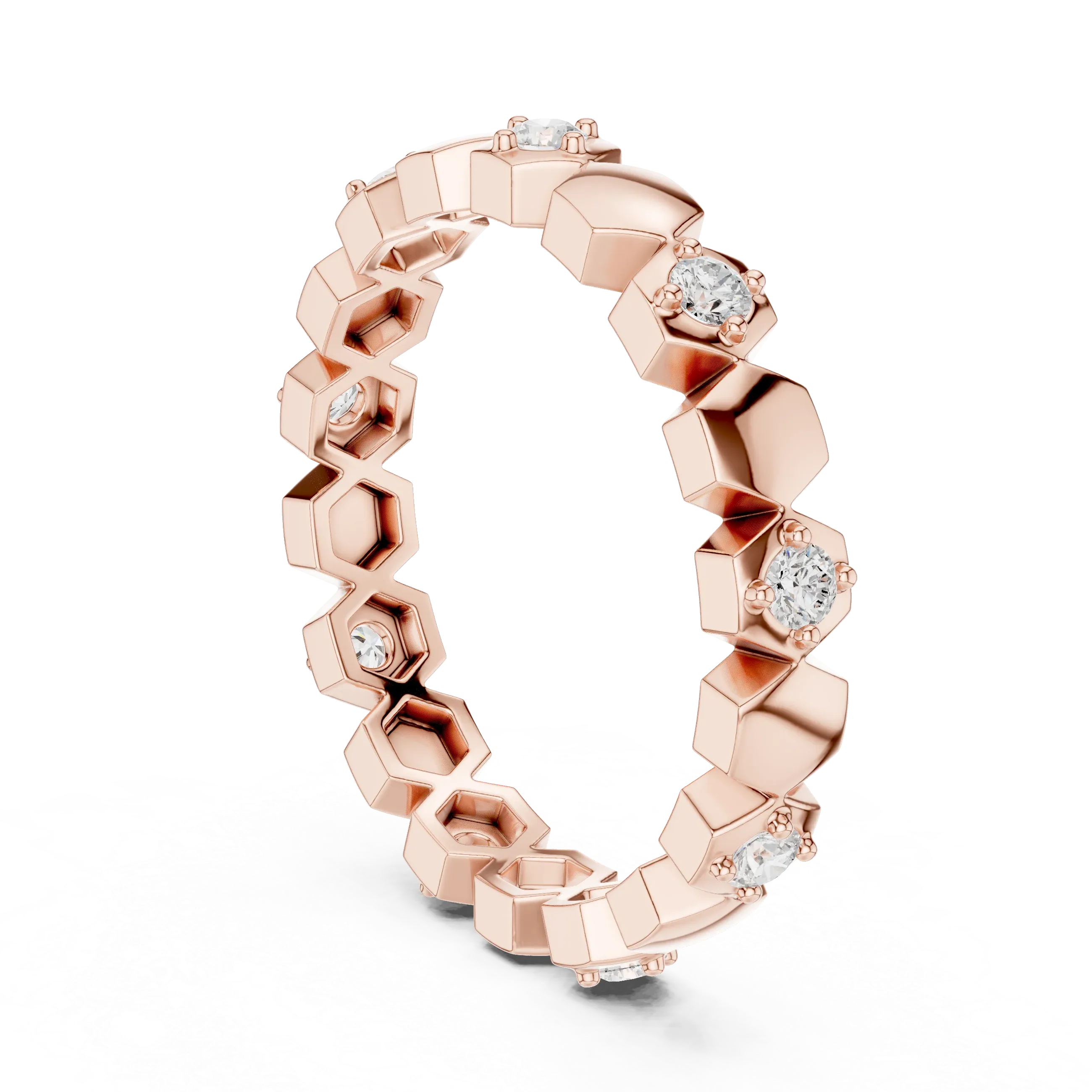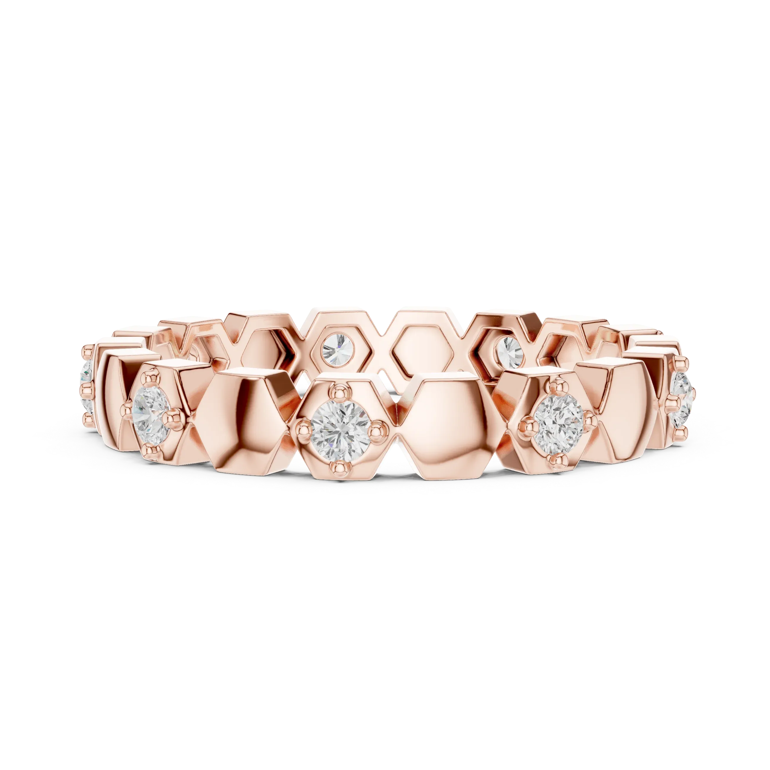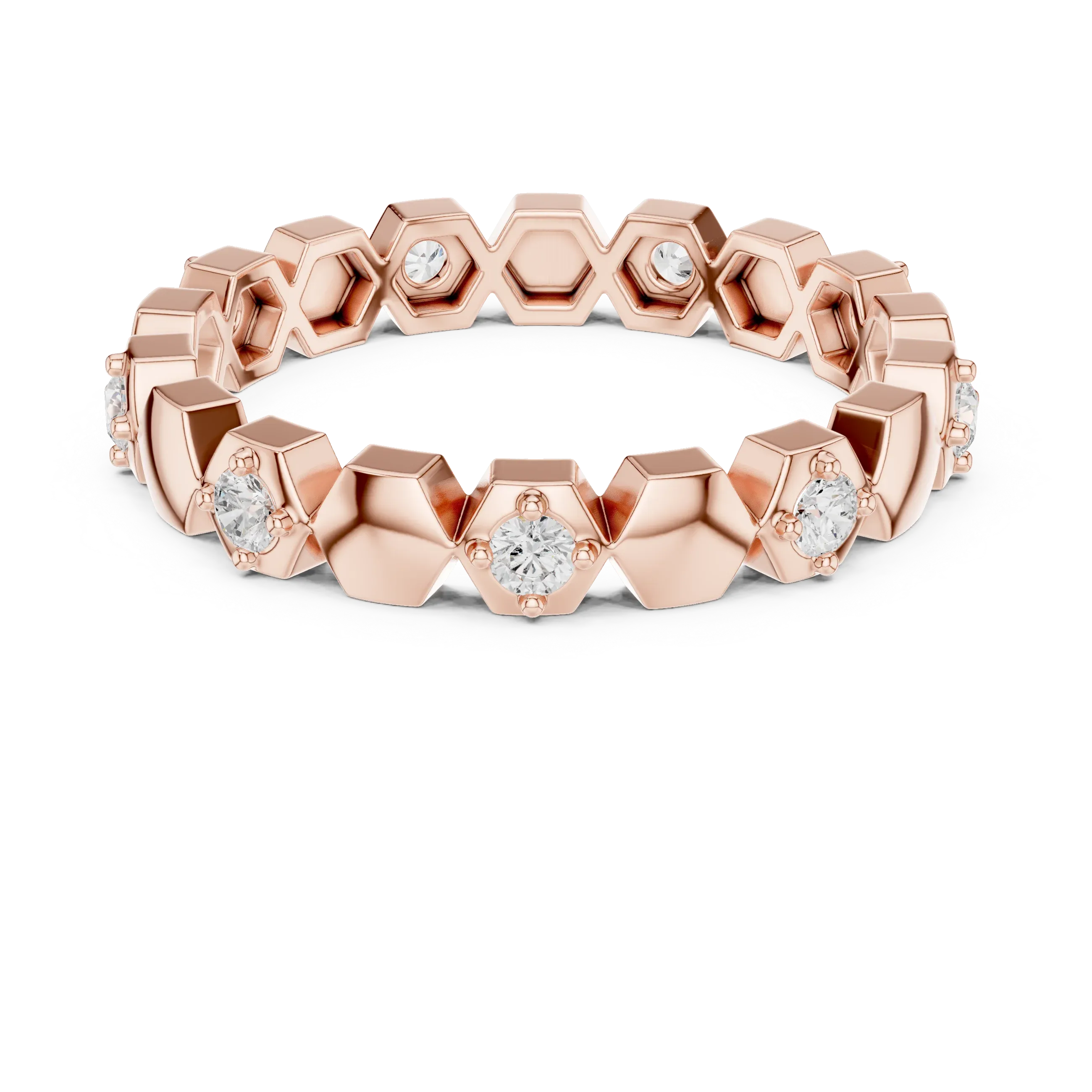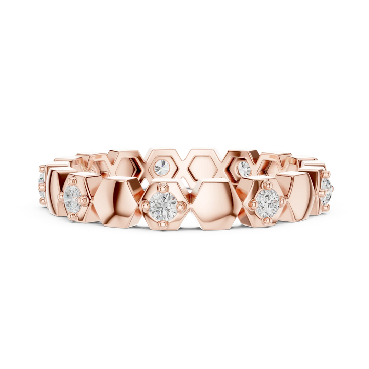 0.31 CTW Hexagon Eternity Band Rose Gold Round D Color VVS1 Moissanite Wedding Ring