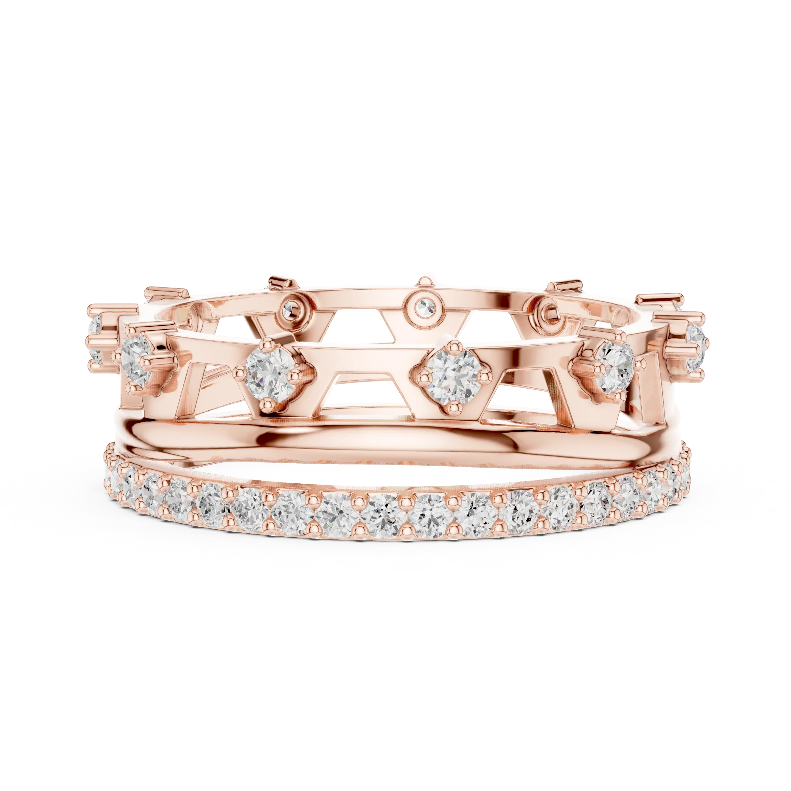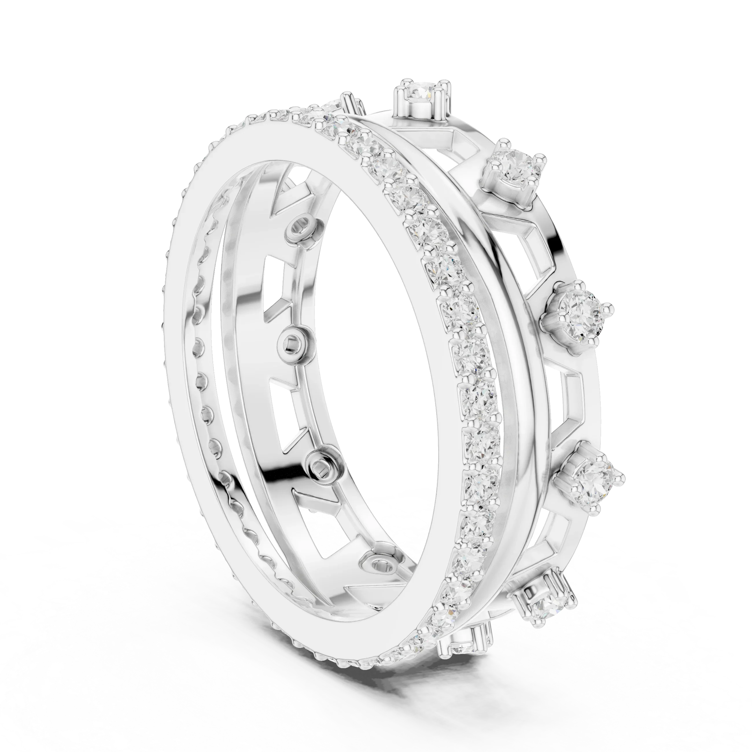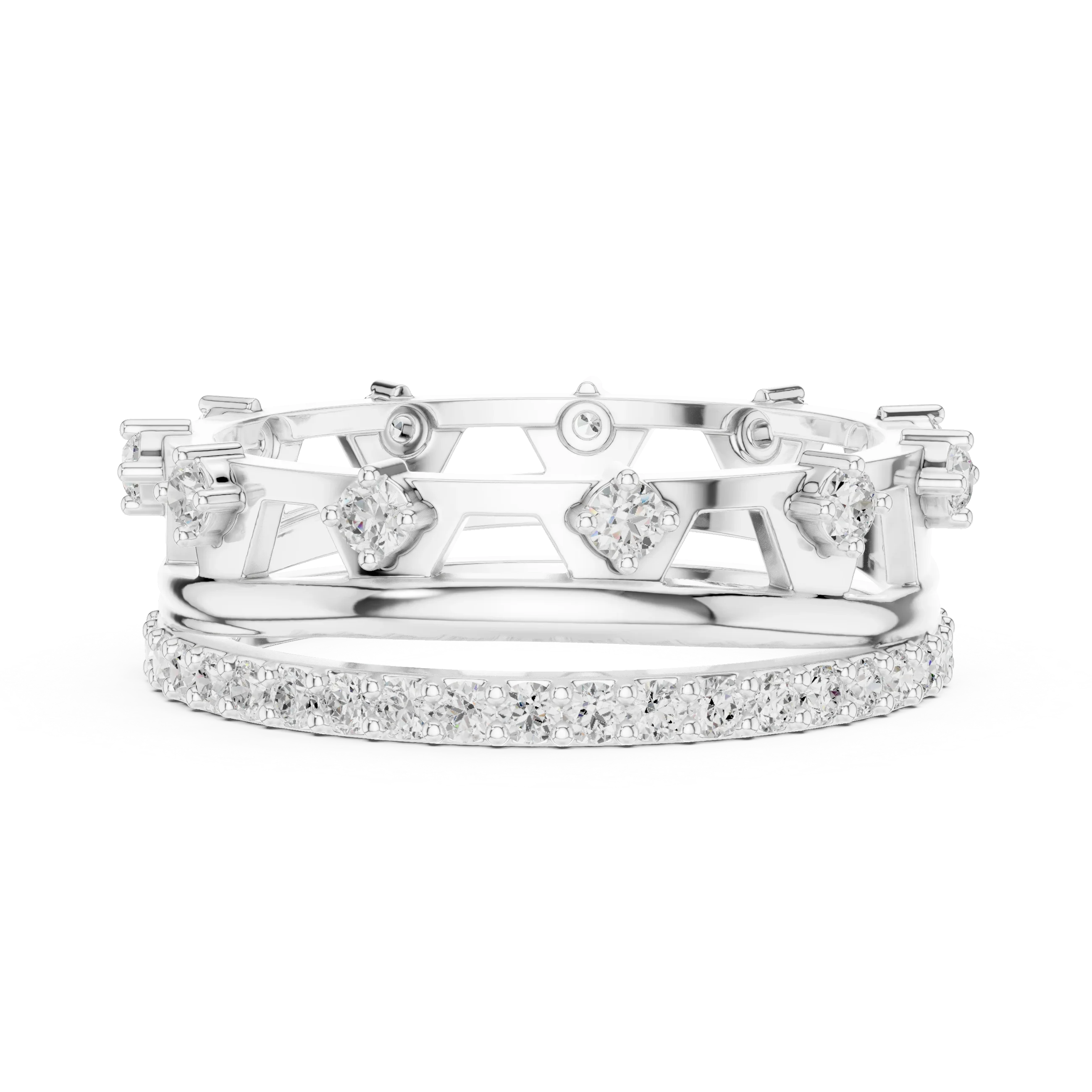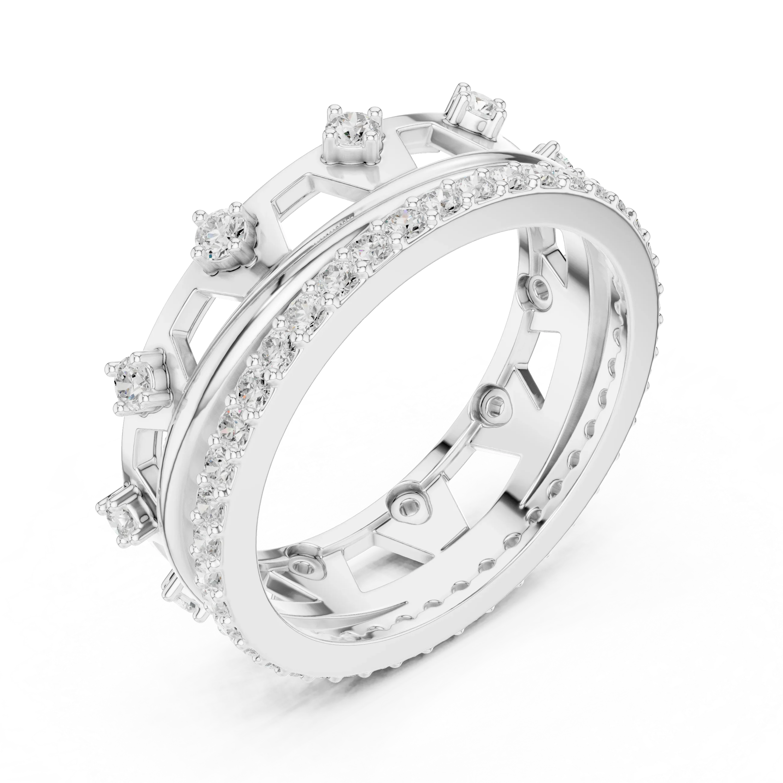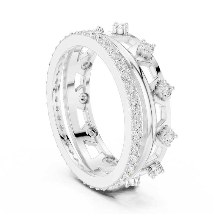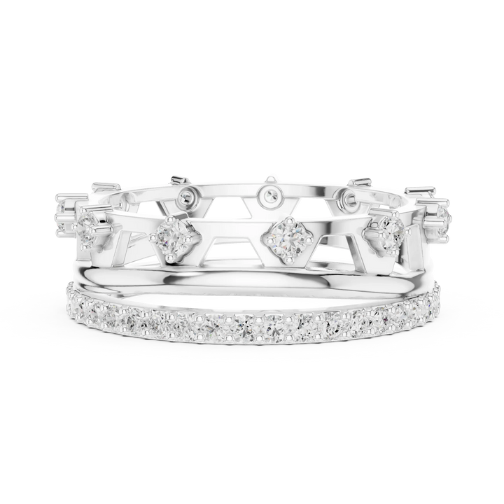 0.58 CTW 14K White Gold VVS Moissanite Crown Tiara Stacking Ring