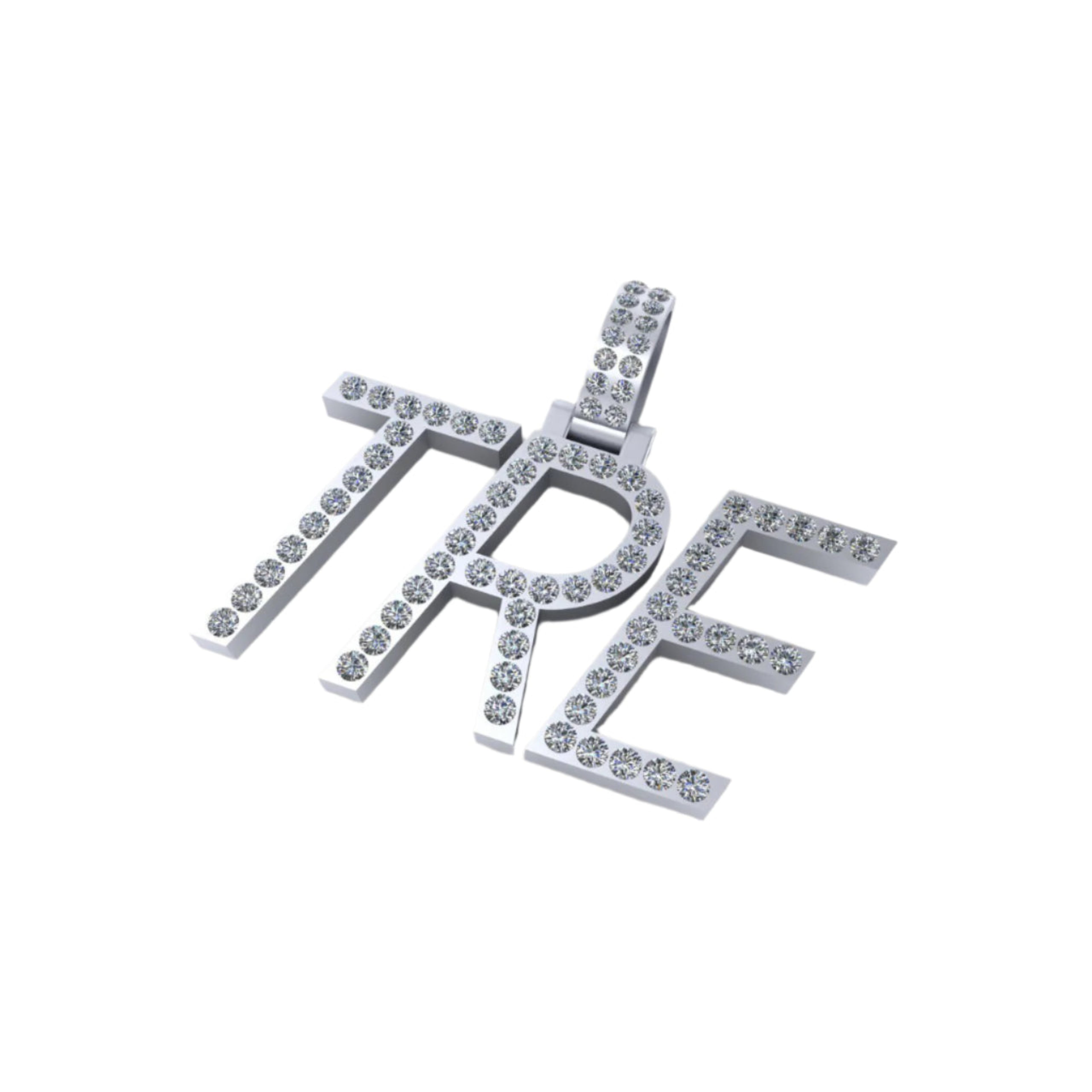 • Sleek silver “TRE” letter charm set with 1.96 Ct VVS stones.