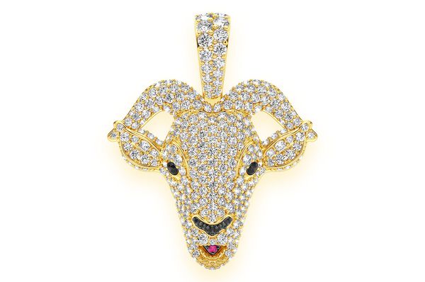 • Bold goat head pendant shimmering with 2.75 Ct radiant diamonds.