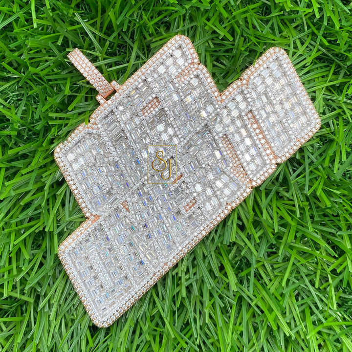 10K Gold Custom Name Pendant Baguette Diamonds - 30.86 CTW