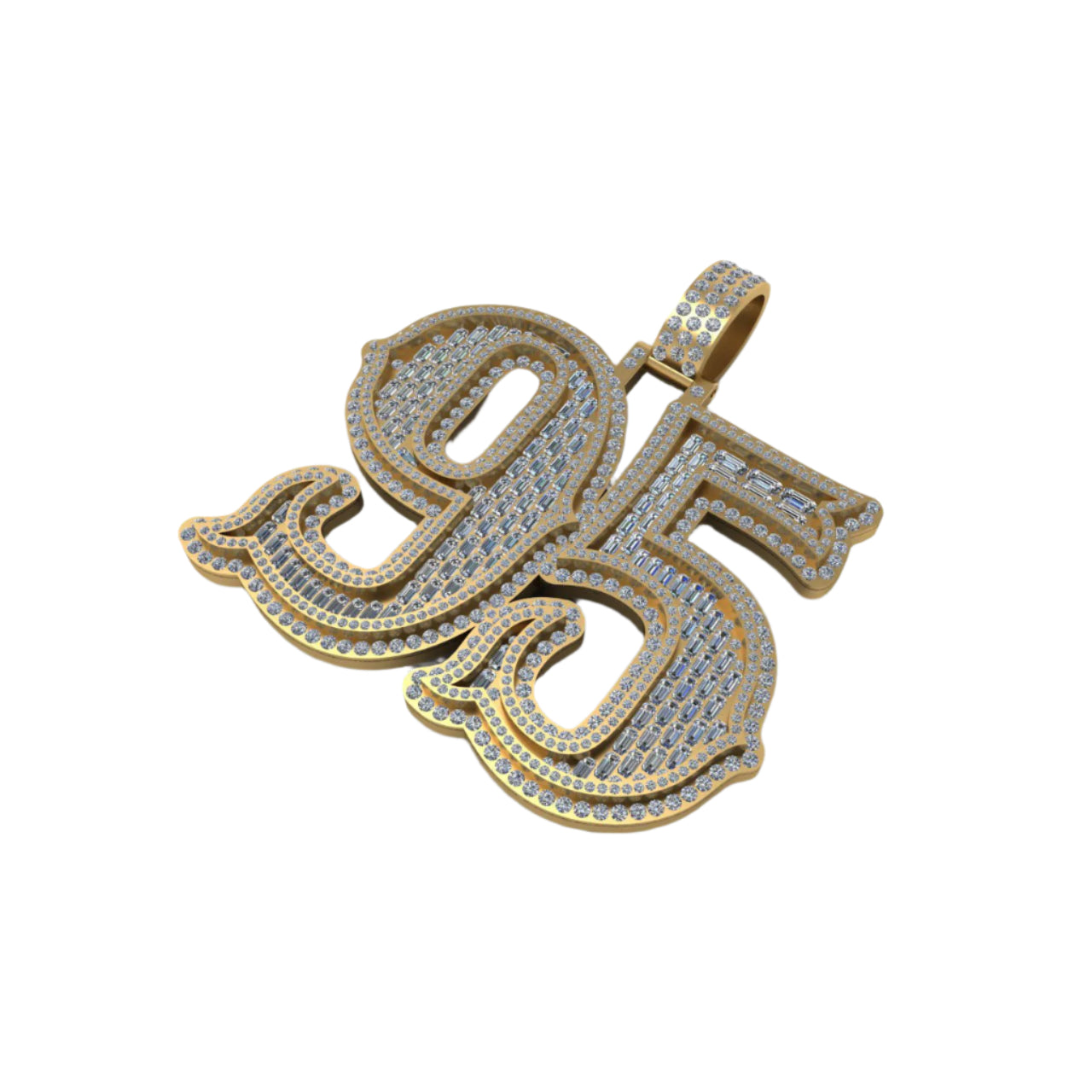 • Eye-catching number 95 pendant with 14.94 Ct radiant stones.