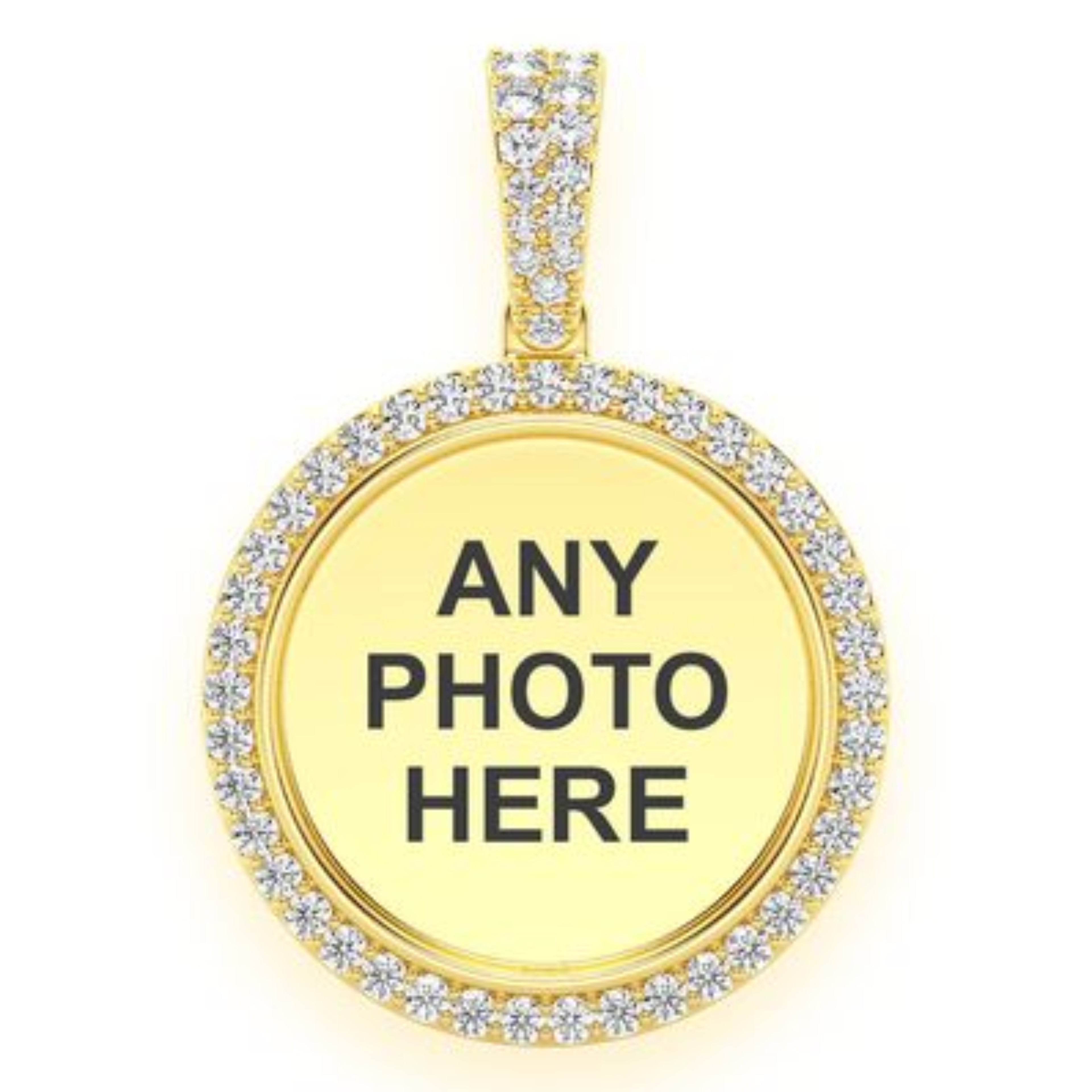 • Keep your memories shining with this round picture pendant iced in 1.50 Ct. of diamonds.