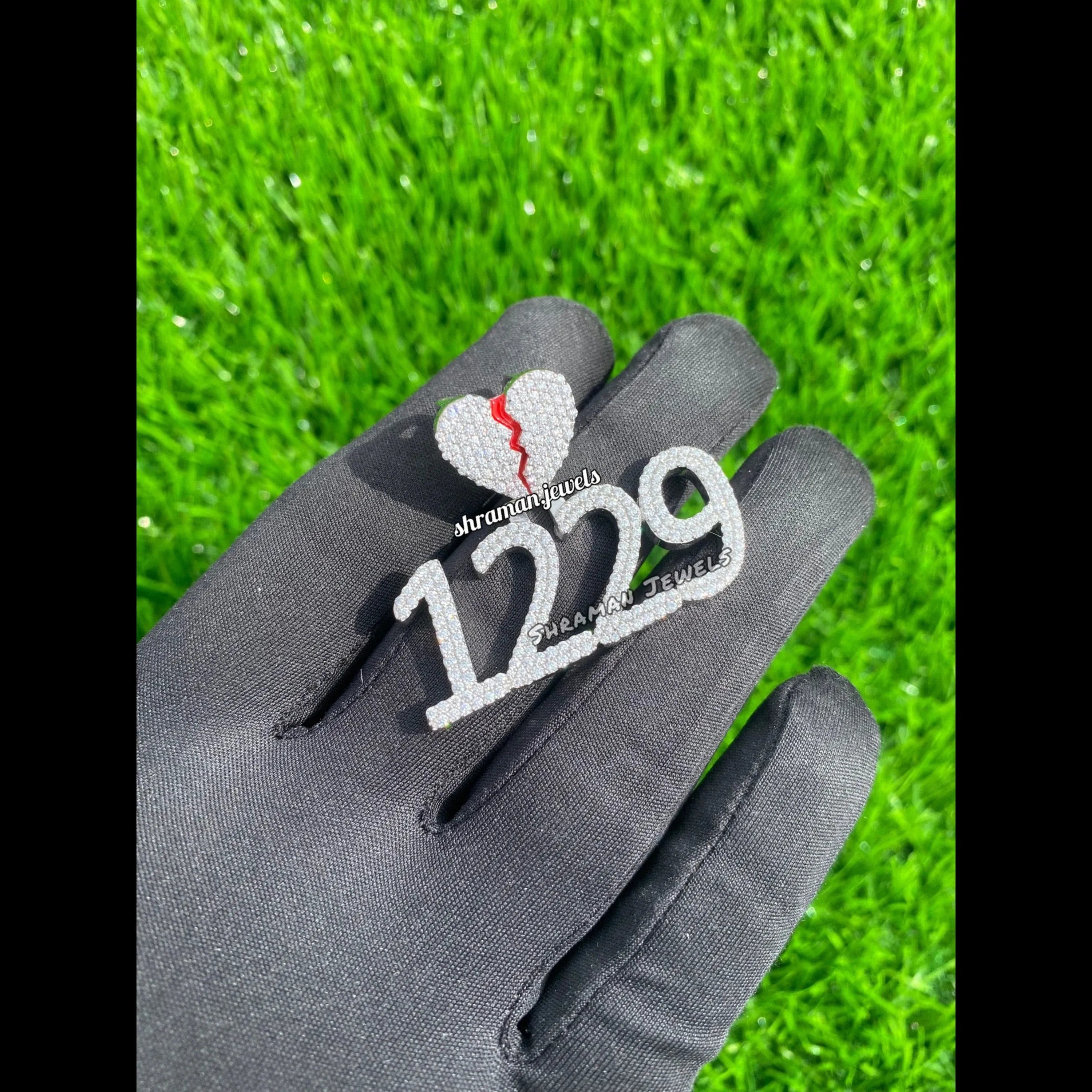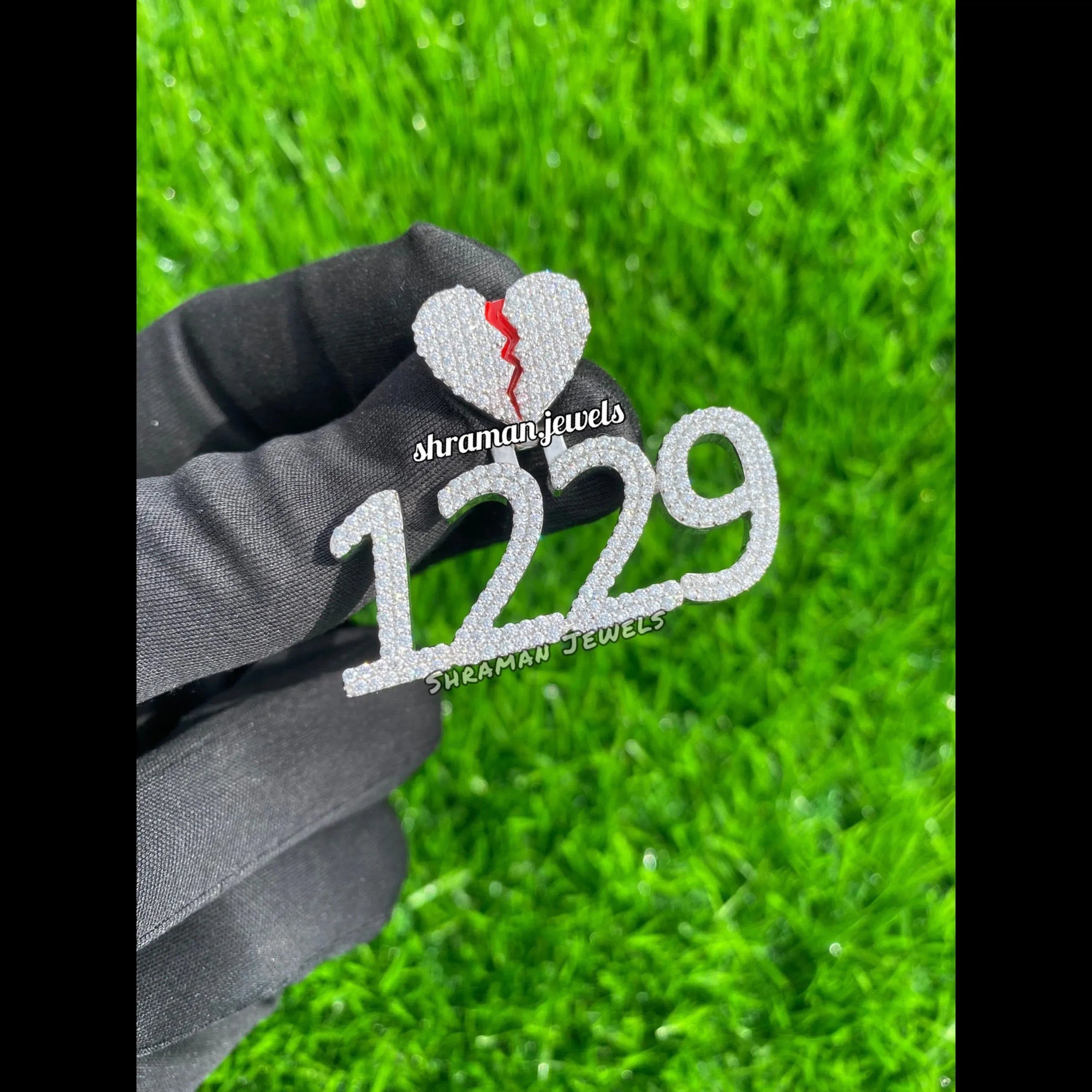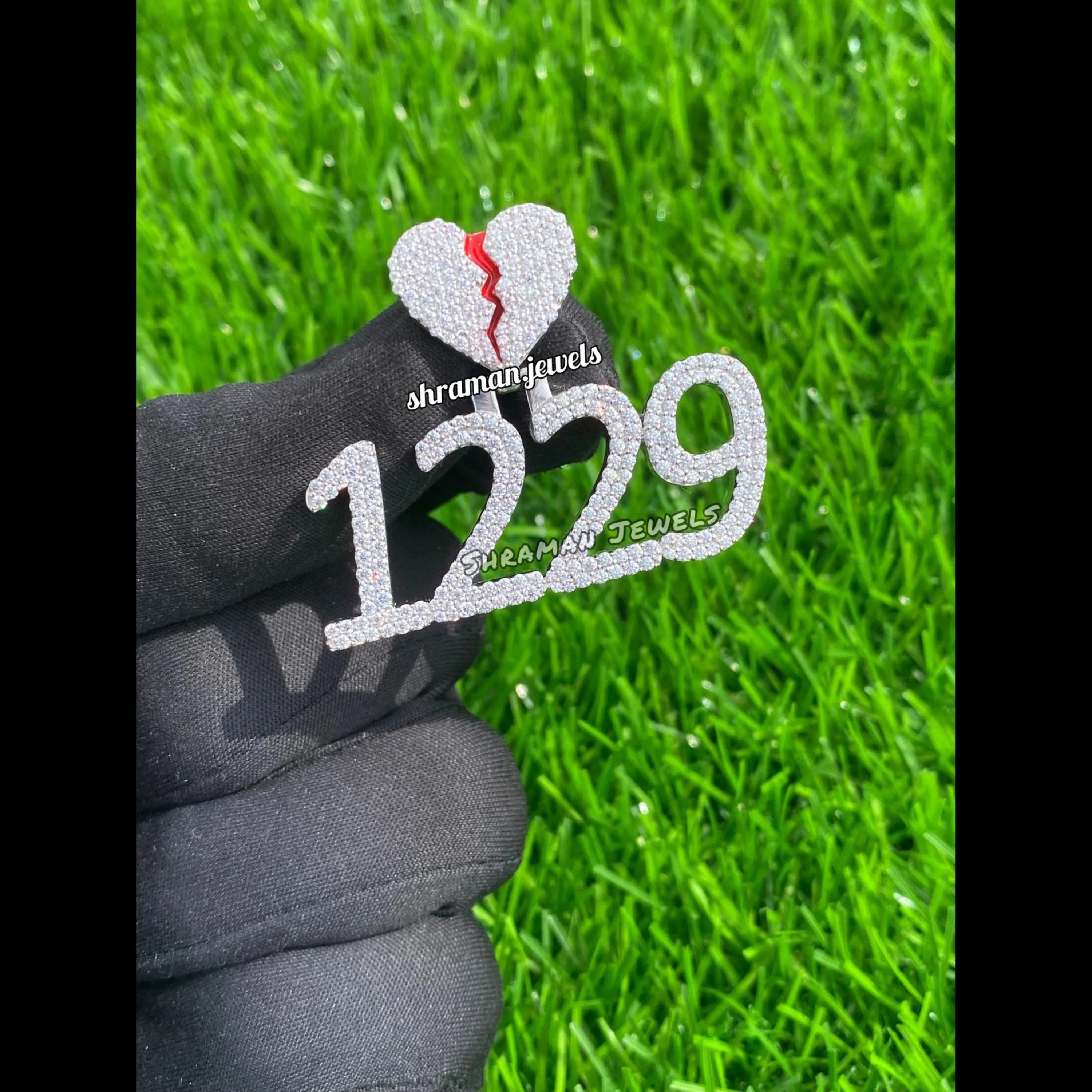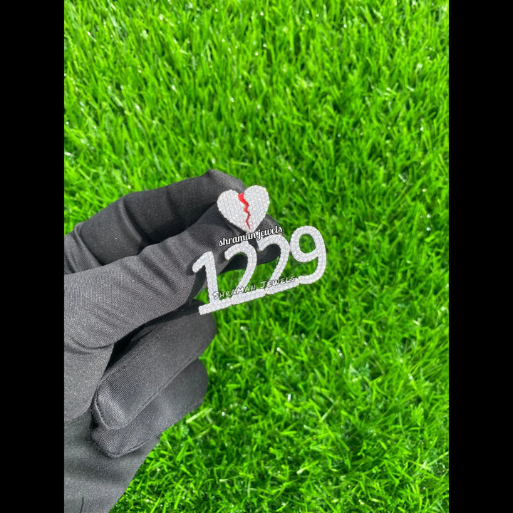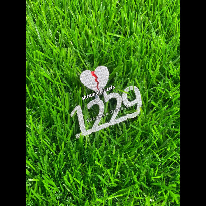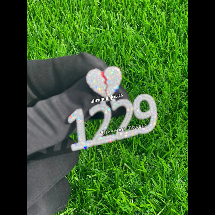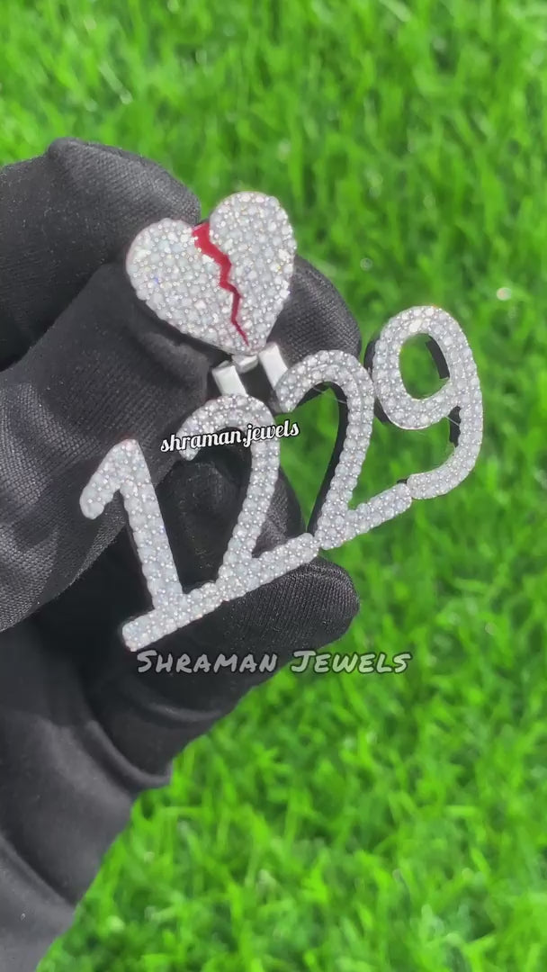 Custom Broken Heart with number Pendant 14K solid gold - 3.05 CTW