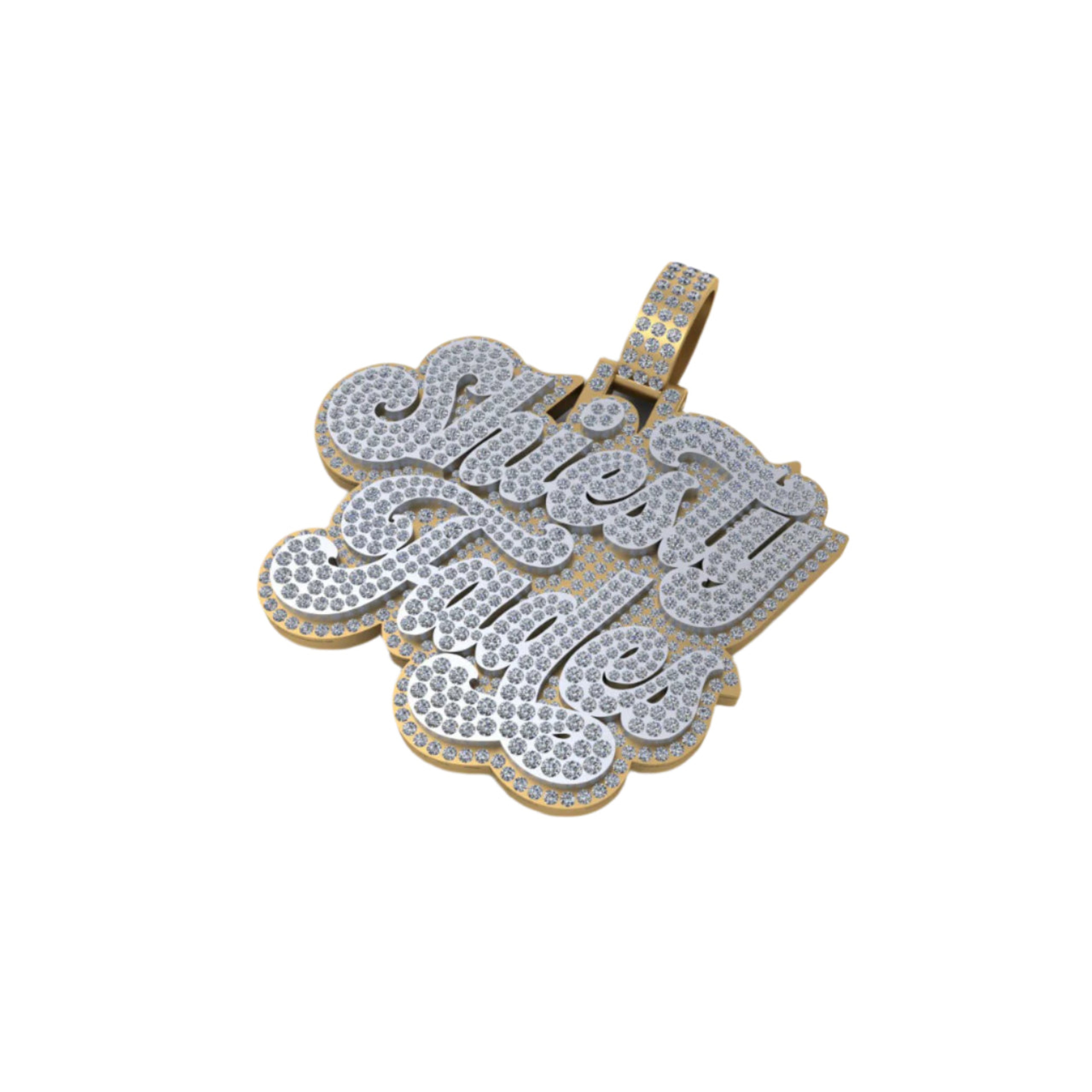 • Custom letter pendant with 7.85 carats of VVS sparkle.