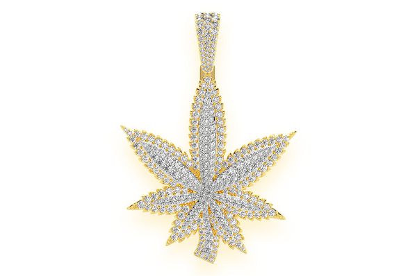 • Bold double-layer cannabis leaf pendant sparkling with 9.00 Ct diamonds.
