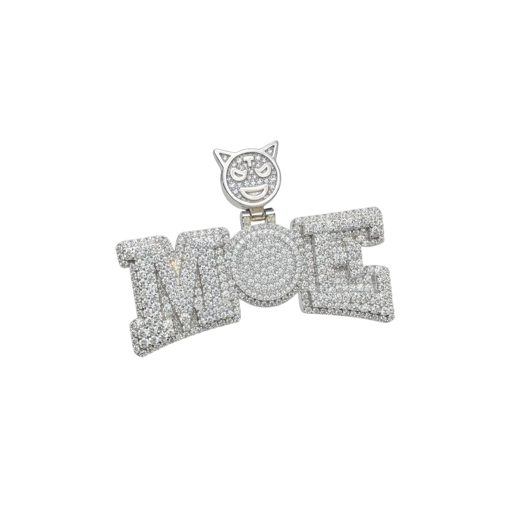 • Fun MOE letter pendant with emoji bail and 4.4 Ct dazzling stones.