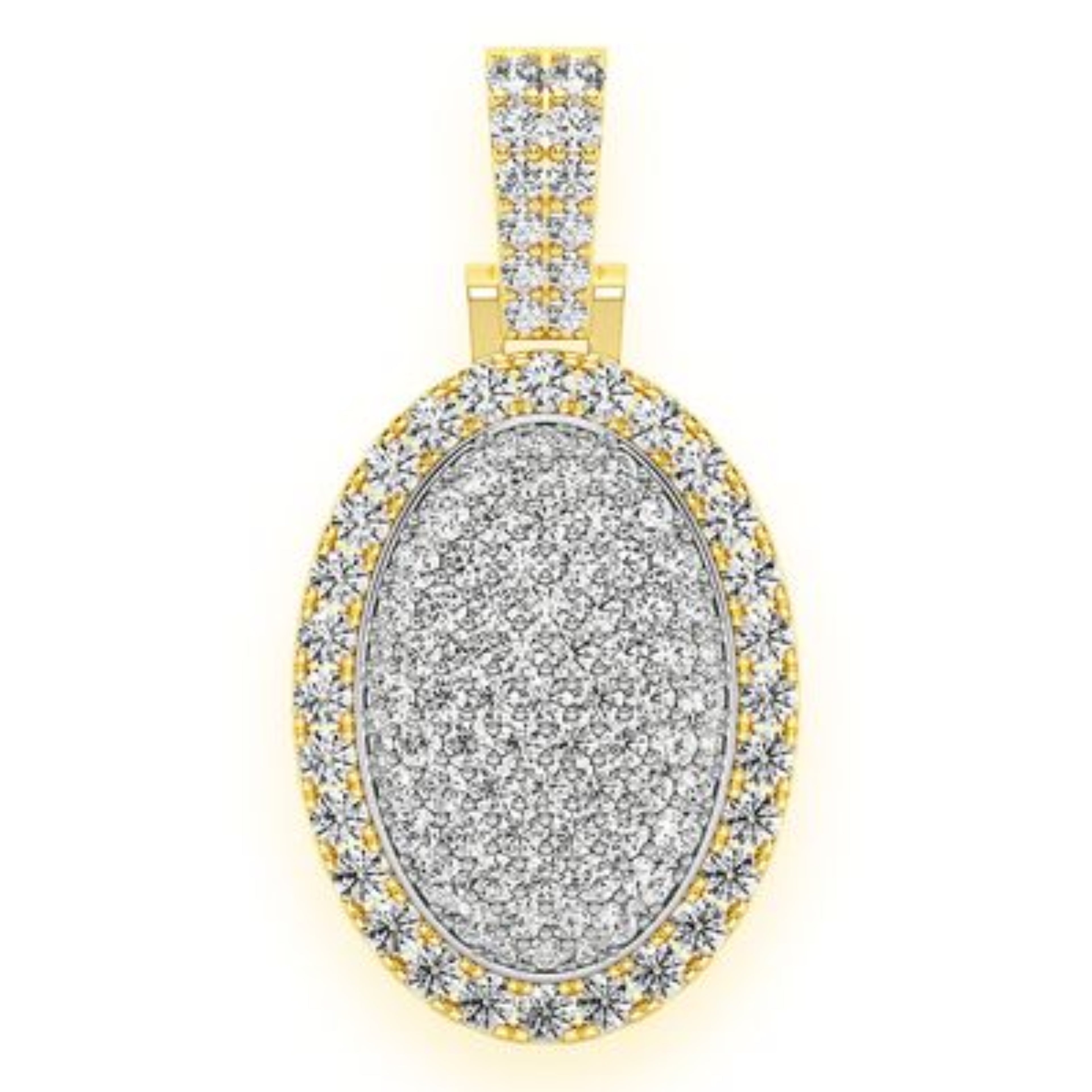• Pull up heavy with this double-layer oval pendant loaded with 2.60 Ct. of diamonds.