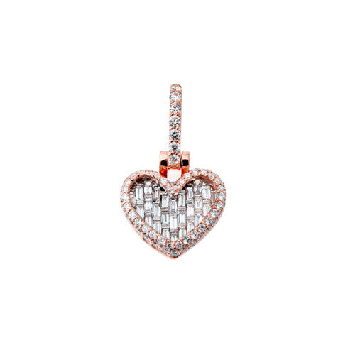 Round & Baguette Diamond Heart Pendant