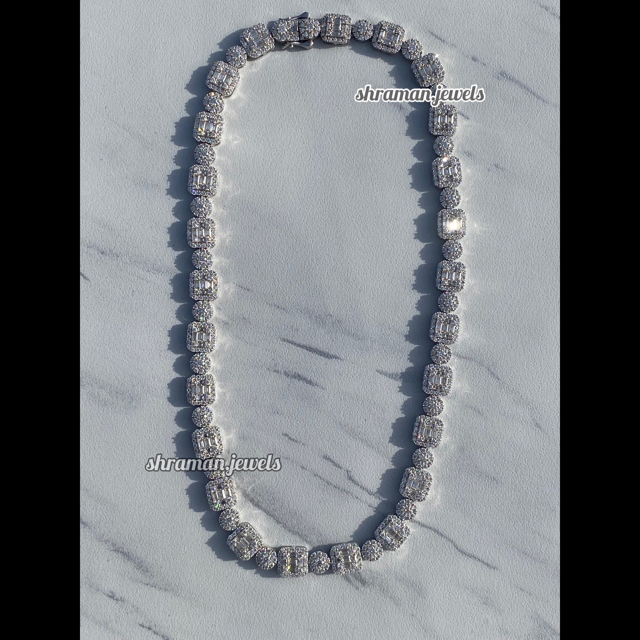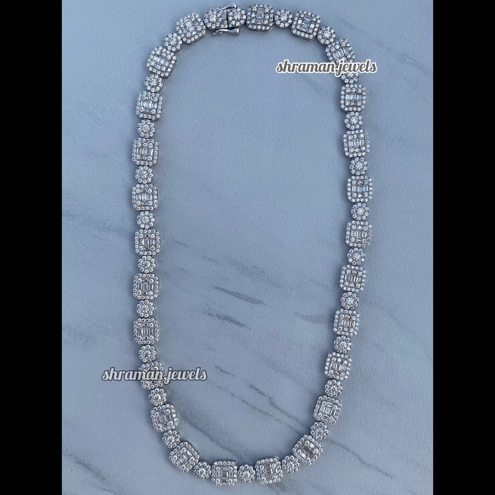 • The ultimate luxury statement — 10MM round & baguette diamonds fused into one fire chain.