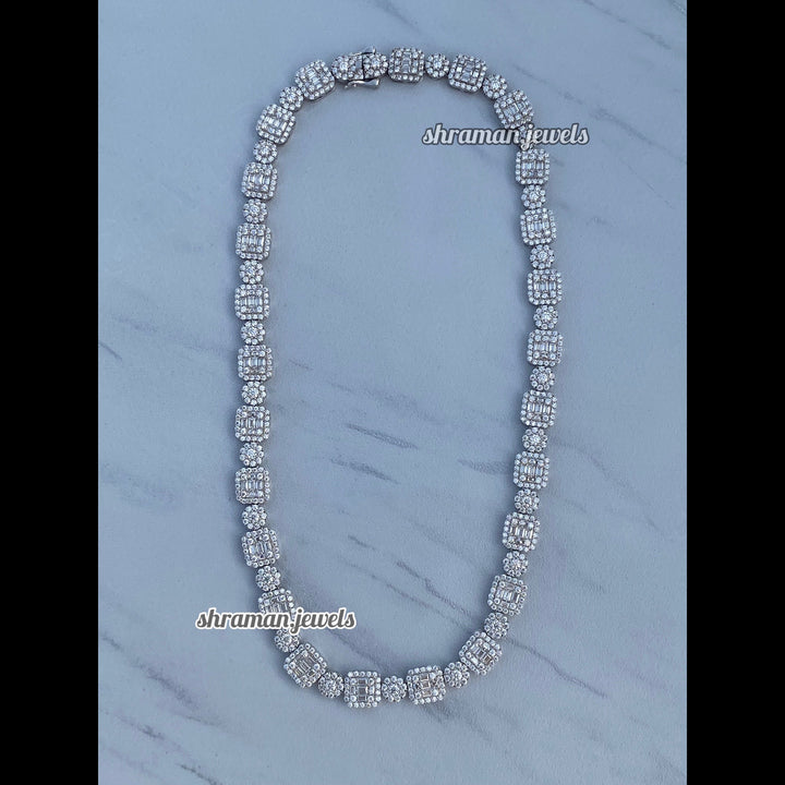 Dazzling 10MM Round & Baguette Diamond Link Necklace
