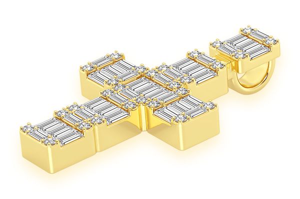 Baguette Diamond Cross Pendant Small 14K Gold Religious Jewelry